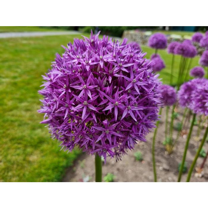 Allium ‘Violet Beauty’ est un ail ornemental avec de grandes sphères de petites fleurs violet-pourpre. Floraison mai-juin, mellifère, rustique et adapté aux pots.