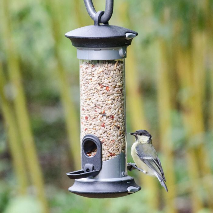 Deze voedersilo is ontworpen met als doel jouw tuinvogels op een comfortabele en veilige manier te voeren. De onderzijde, de deksel en de poortjes kun je eenvoudig losmaken met het unieke Click & Go systeem. Zo kun je de silo eenvoudig demonteren, schoonmaken, in elkaar zetten en vullen zonder dat je hiervoor speciaal gereedschap nodig heeft.