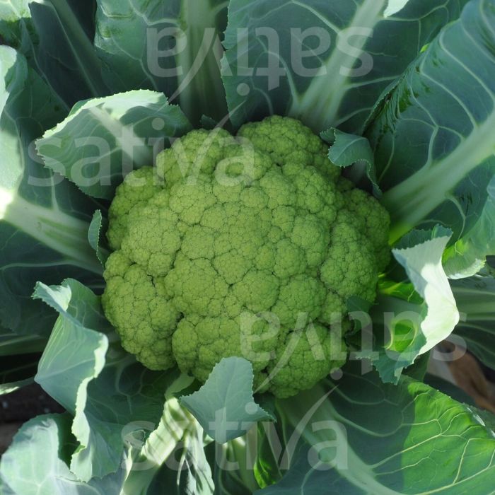 Chou-fleur vert clair à la fine texture et à la belle forme arrondie. Forme de grosses pommes fermes pouvant peser jusqu’à 1kg. Conserve sa couleur à la cuisson. À maturité en 90 jours.
