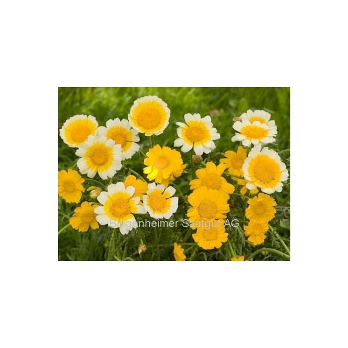 Eetbare chrysant, Shungiku in Japan. Eenjarig, eet jong blad rauw, gestoomd, gestoofd. Kruidige smaak.