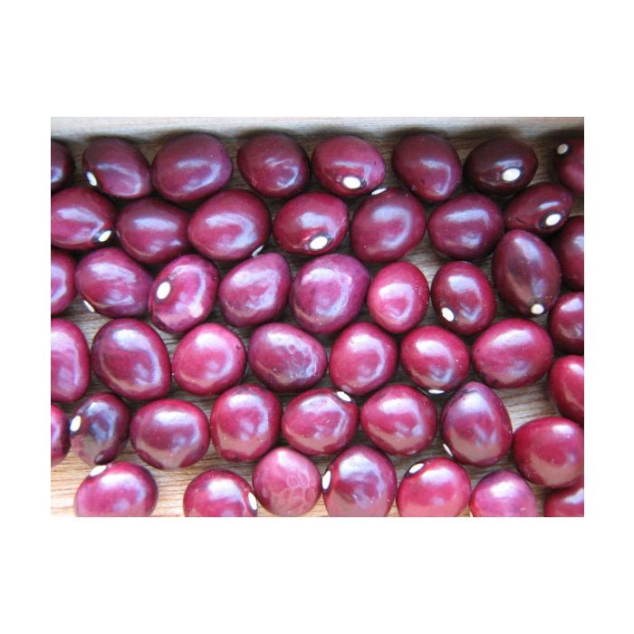 Variété hâtive et très productive donnant de nombreuses petites gousses jaunes.Très beaux grains ronds, rose bordeaux. Se consomme en sec.