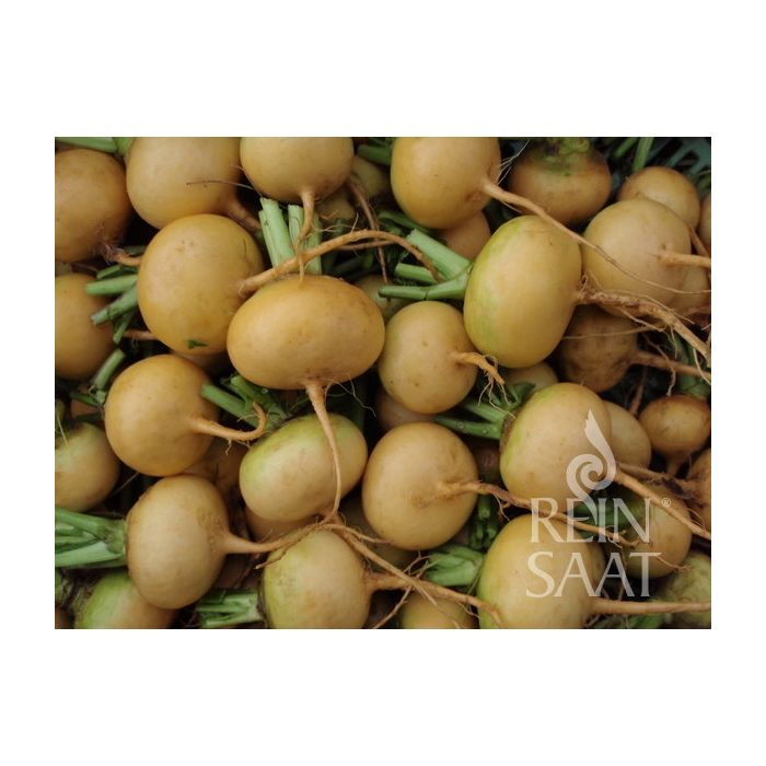 Navet jaune doré, de forme ronde et aplatie, à la chair tendre et ferme, de couleur blanc crème à jaune clair. Les navets légèrement sucrés poussent toute l'année avec un pic de qualité en automne. Culture toute l'année en serre, en pleine terre de mai à octobre pour la culture de printemps et d'automne. Bonne capacité de conservation.