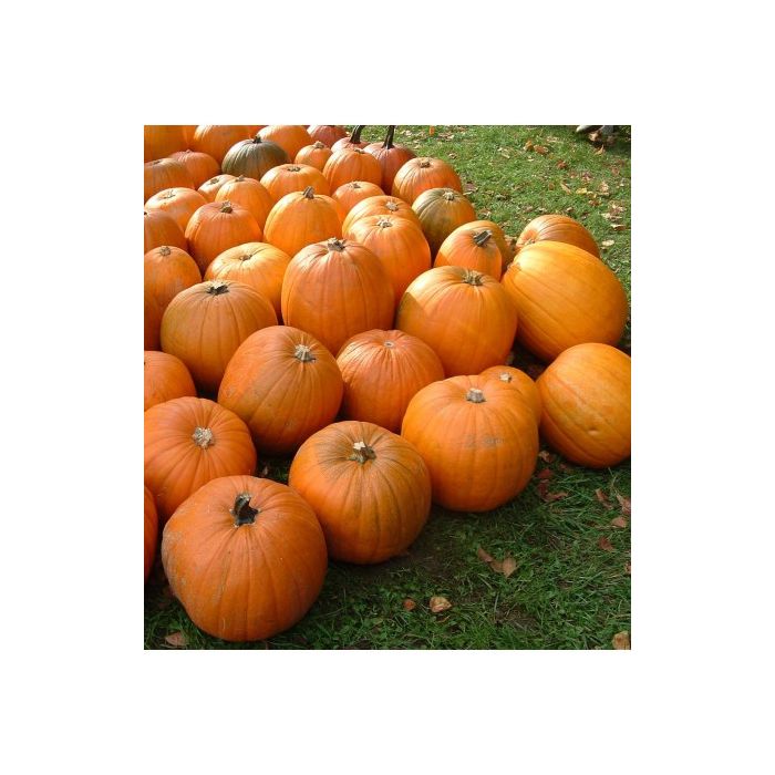 Courge typique d’Halloween. La plante est légèrement rampante. Le fruit couleur or antique peut atteindre 3 kg et se conserve environ 4 mois.
