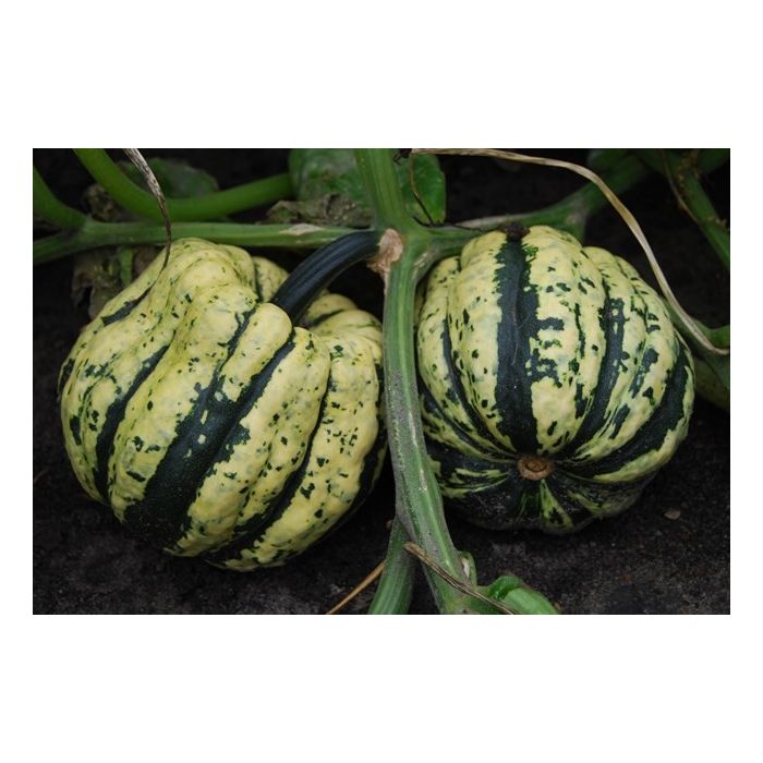 Une petite courge de consommation à l'aspect décoratif qui peut également être utilisé comme potiron d'ornement. Le fruit a une couleur de fond blanc crème avec des stries vertes. Il se conserve 3 à 4 mois. La chair orange est très savoureuse avec son arôme de châtaigne. Elle est particulièrement savoureuse cuite à la vapeur avec la peau qui reste ferme.