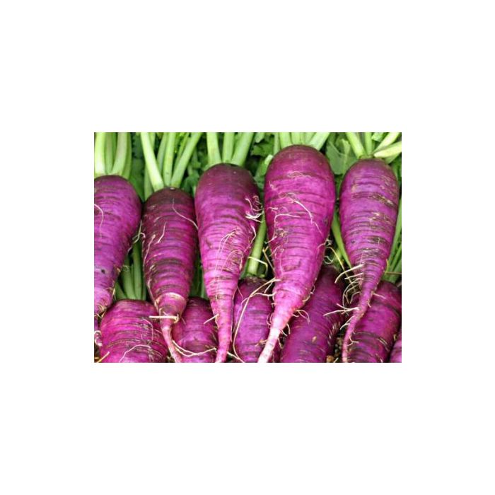 Le radis rave d'automne allongé Automne et hiver bleus a une peau extérieure violette et une chair blanche, de 15 à 18 cm de long. Bonne capacité de conservation. Une véritable spécialité de radis rave.