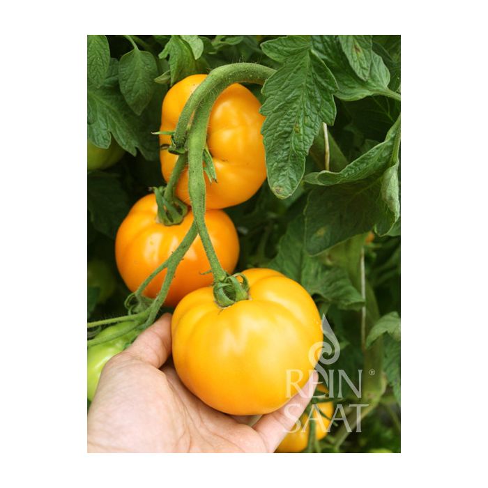 Tomate charnue orange, productive et indéterminée, issue de l'EHZ de ReinSaat. Les fruits de 150 à 250 g ont une peau ferme et lisse et une chair fruitée et sucrée, juteuse et fondante, savoureuse. Culture sous serre et sous abri en pleine terre.