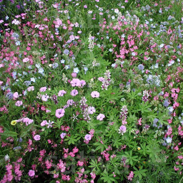 Mélange de fleurs délicates de petite taille. Contient entres autres: argémone, adonis d'été, nemophila, sauge verte, silène, agérate, coquelicot et lupin nain.