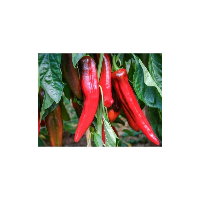 Poivron de type Bullhorn (corne de taureau) à haut rendement et à maturation moyenne, avec des fruits à parois épaisses, lourds et à maturation rouge. Longueur d'environ 17-20 cm. Poids du fruit environ 200-300 g. Vigoureuse et à croissance rapide. Pleine saveur.