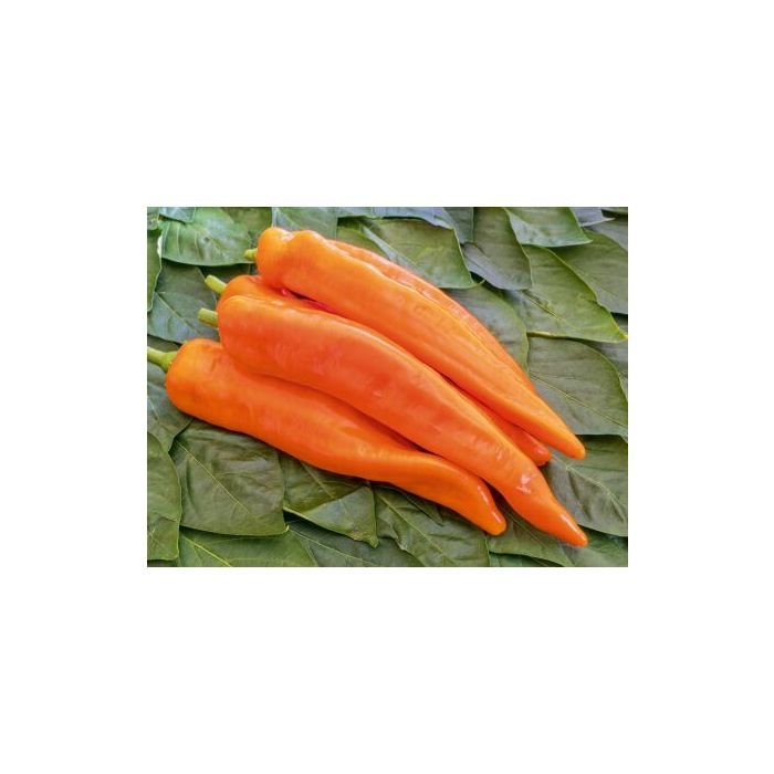 Poivron doux de type pointu à croissance ouverte et haute. Les fruits effilés se colorent du vert clair à l‟orange et atteignent environ 20-22cm. Se conserve bien après la récolte. Plantes vigoureuses, les fruits mûrissent encore bien en fin de récolte lorsque le temps se rafraichit. Saveur sucrée excellente.