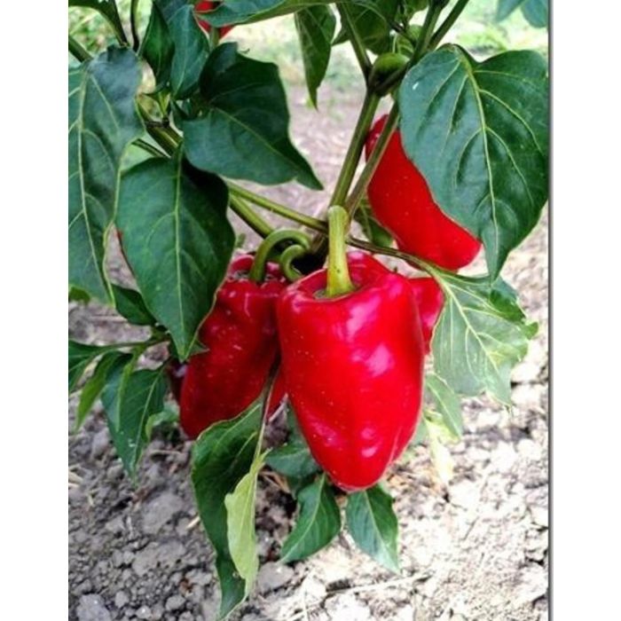 Un délicieux poivron d'extérieur. Il mûrit, même rouge, en pleine terre et au cours d'un été normal. C'est une plante robuste, qui n'a pratiquement pas besoin de support. La forme est traditionnelle, rectangulaire et parfois pointue. Le poivron atteint une hauteur d'environ 60 cm. Il est également très savoureux cru.