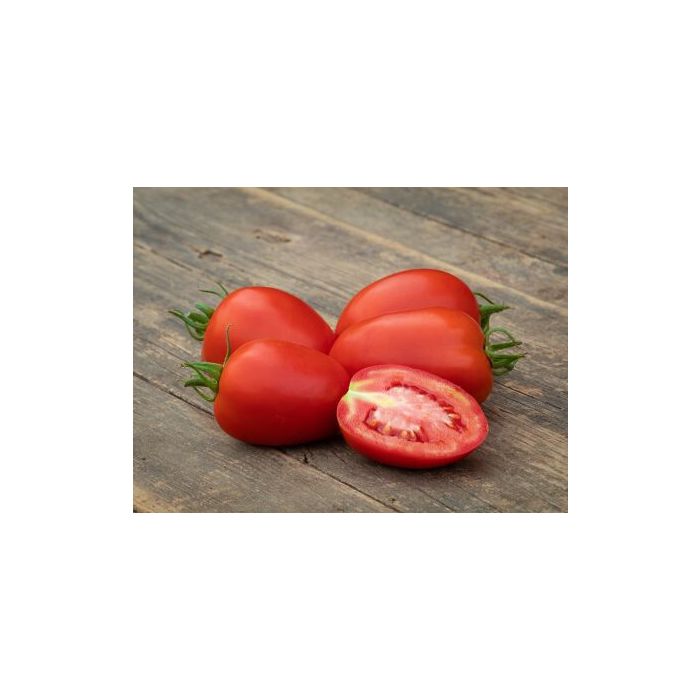 Tomate prune rouge, productive et autoportante. Fruits d'environ 125-140 g, lourds et très fermes. Potentiel de rendement élevé. Avec une certaine protection, convient également à la culture en plein air. Tomate ferme