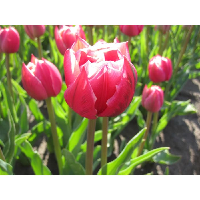 Tulipe spectaculaire ! Les fleurs très pleines sont roses avec une bordure blanche. Tant de beauté sur une tige de 40 cm de haut. Convient pour les jardins et les pots.